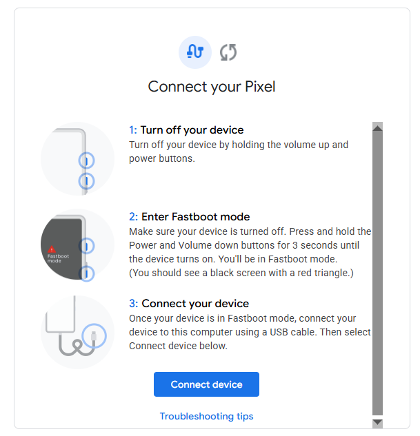 1. Connecter le Pixel au PC et ouvrir le navigateur sur le site Google UDFPS.